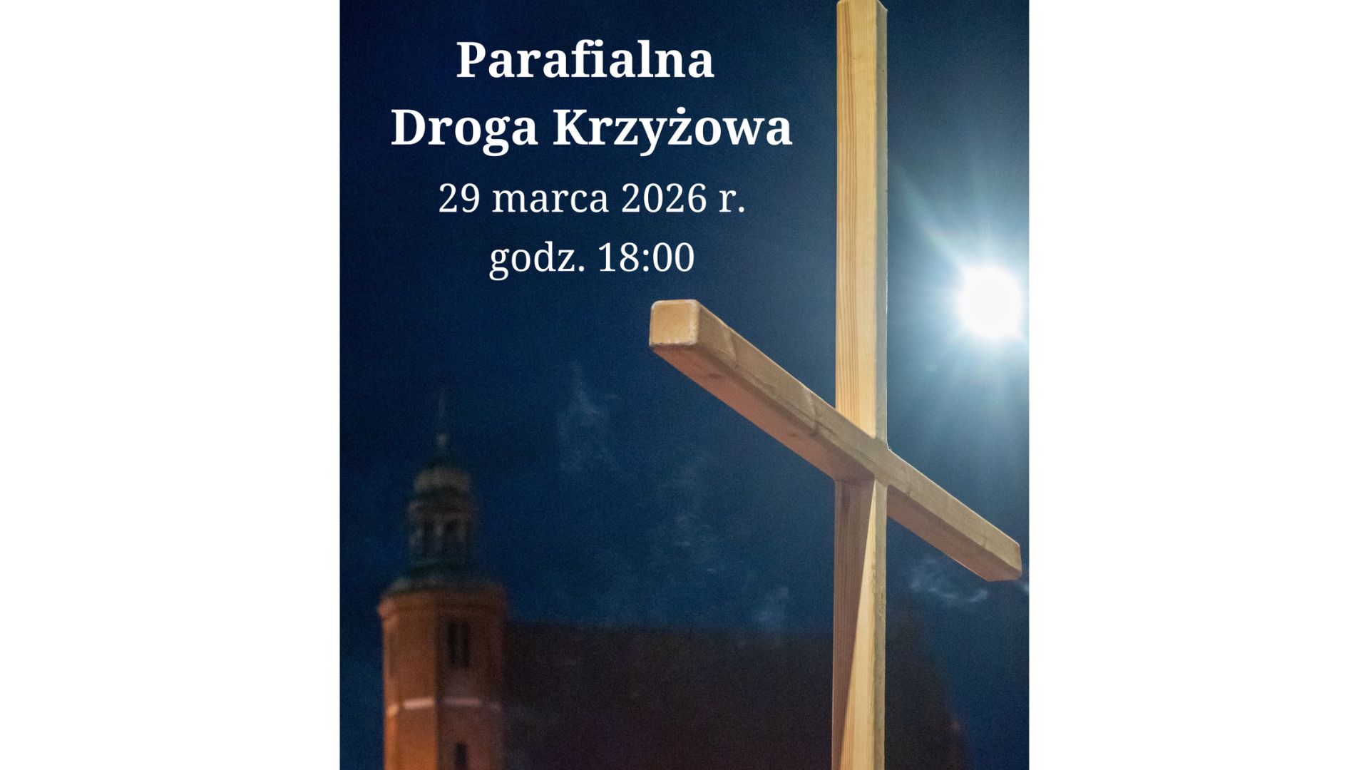 W najbliższą niedzielę (29.03), tj. w Niedzielę Męki Pańskiej, na ulicach naszej parafii zostanie odprawiona Parafialna Droga Krzyżowa. Modlitwę rozpoczniemy