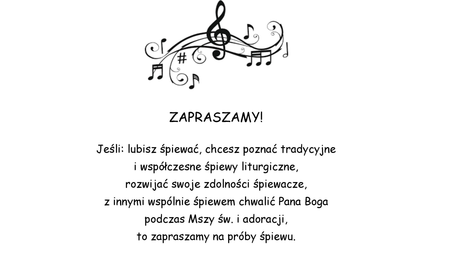 Jeśli: lubisz śpiewać, chcesz poznać tradycyjne i współczesne śpiewy liturgiczne, rozwijać swoje zdolności śpiewacze, z innymi wspólnie śpiewem chwalić Pana Boga podczas Mszy św.